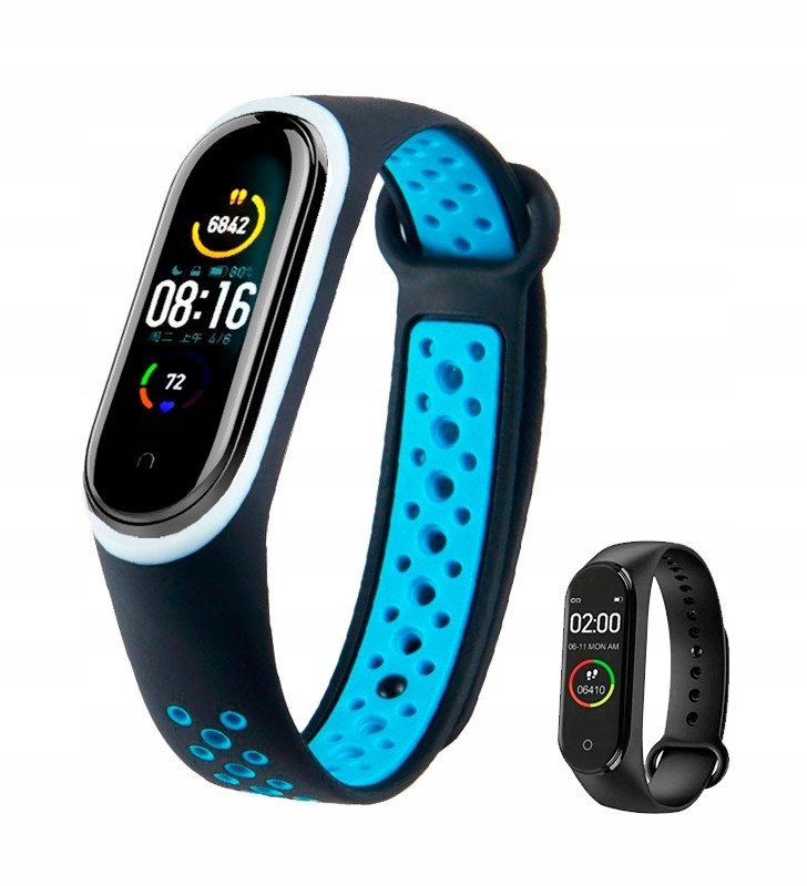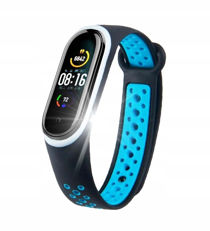 Pasek do zegarka SMARTBAND CZARNO NIEBIESKI DO M4/M5/m6 perforowany czarno niebieski W2 – specyfikacja