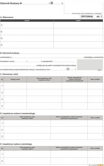 | Nazwa: | MICHALCZYK i PROKOP druki, dziennik budowy a4 |