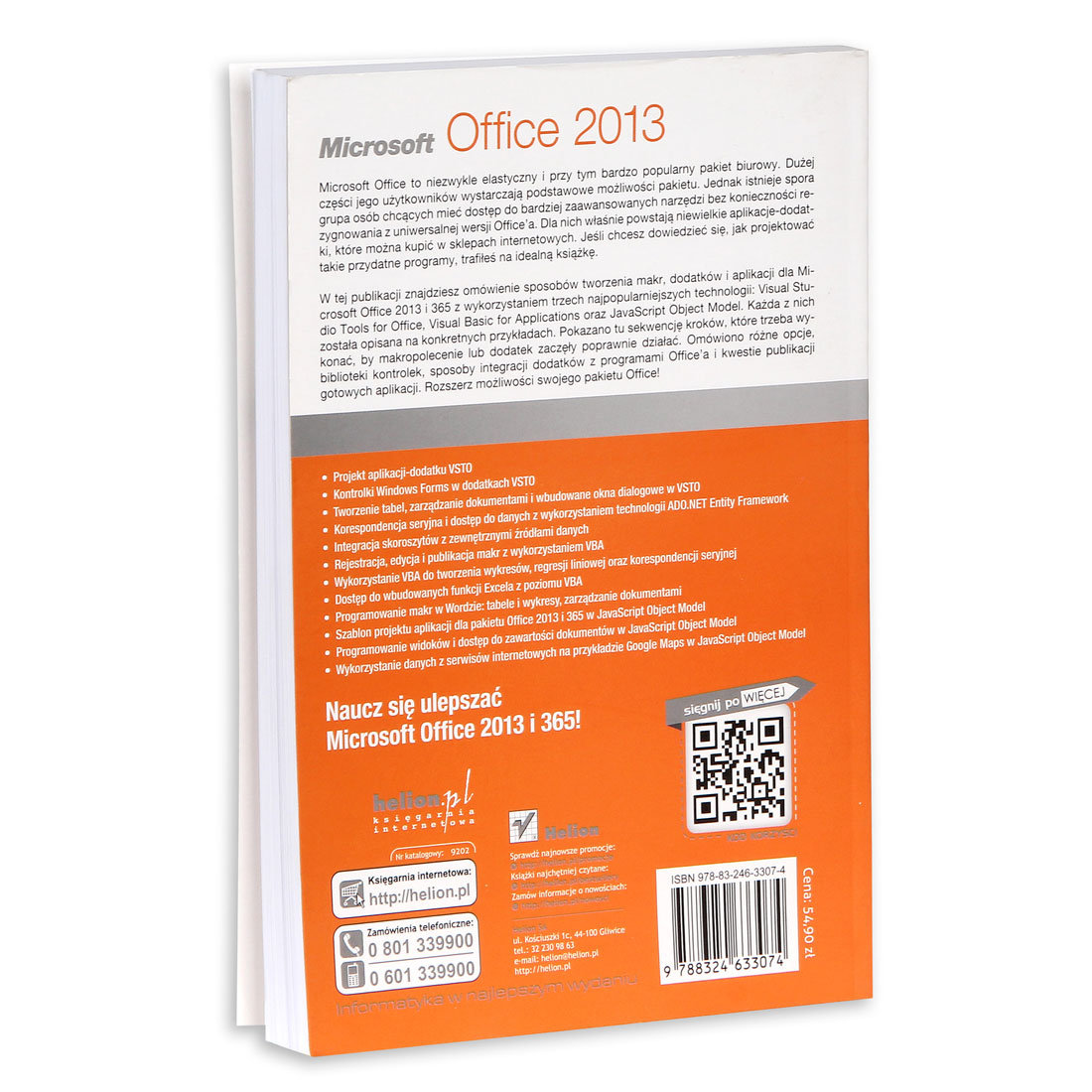 W tej publikacji znajdziesz omówienie sposobów tworzenia makr, dodatków i aplikacji dla Microsoft Office 2013 i 365 z wykorzystaniem trzech najpopularniejszych technologii: Visual Studio Tools for Office, Visual Basic for Applications oraz JavaScript Object Model. Każda z nich została opisana na konkretnych przykładach. Pokazano tu sekwencję kroków, które trzeba wykonać, by makropolecenie lub dodatek zaczęły poprawnie działać. Omówiono różne opcje, biblioteki kontrolek, sposoby integracji dodatków z programami Office’a i kwestie publikacji gotowych aplikacji. Rozszerz możliwości swojego pakietu Office!