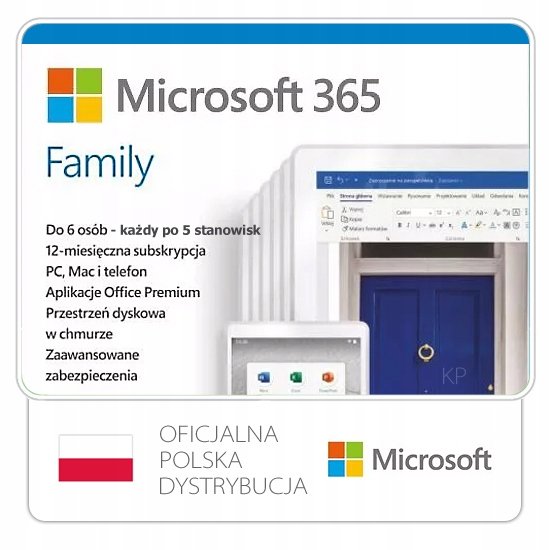Microsoft Office 365 Family to zaawansowany pakiet biurowy przeznaczony nawet dla 6 użytkowników, gwarantujący dostęp do pełnych wersji aplikacji Office na różnych urządzeniach. Ciesz się komfortem pracy, nauki i organizacji codziennych obowiązków z dowolnego miejsca, korzystając z najnowszych narzędzi Microsoft – zawsze z bezpłatną pomocą techniczną producenta oraz pełnym bezpieczeństwem chmury OneDrive.
