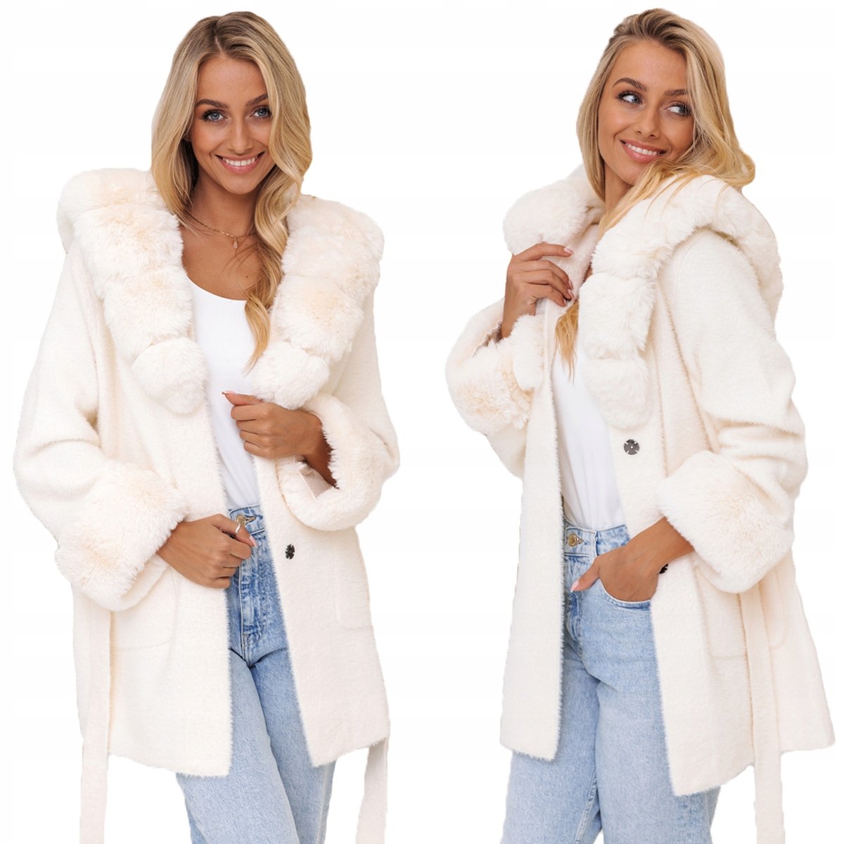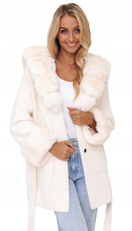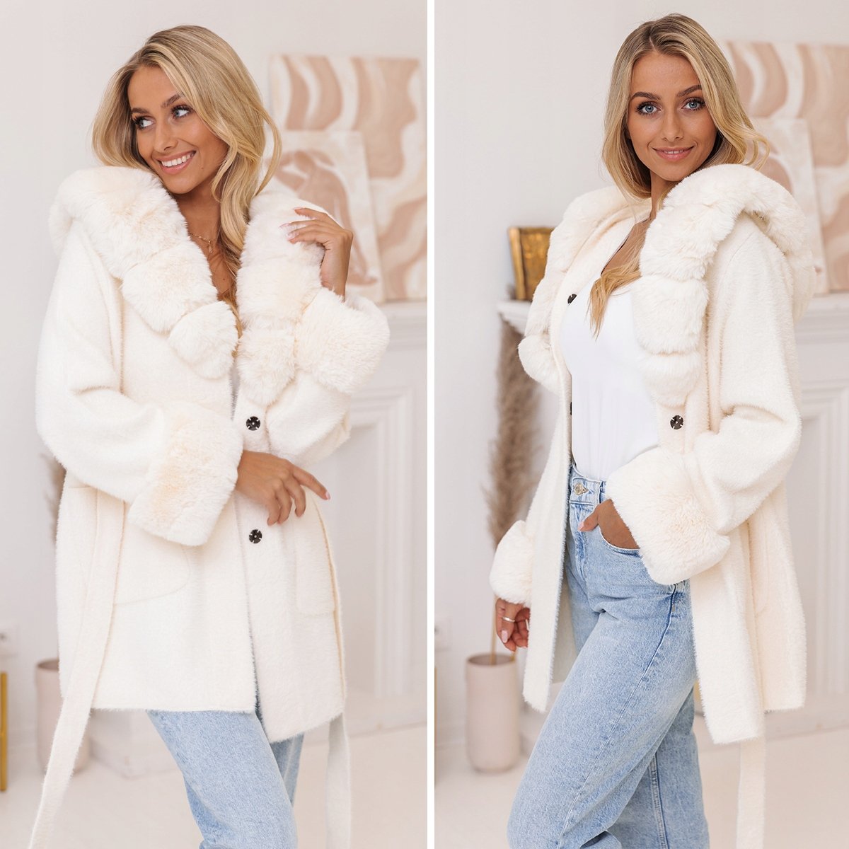 Właśnie zrecenzowałem Mięciutka Alpaka Z Futerkiem Płaszcz Z Paskiem Ecru