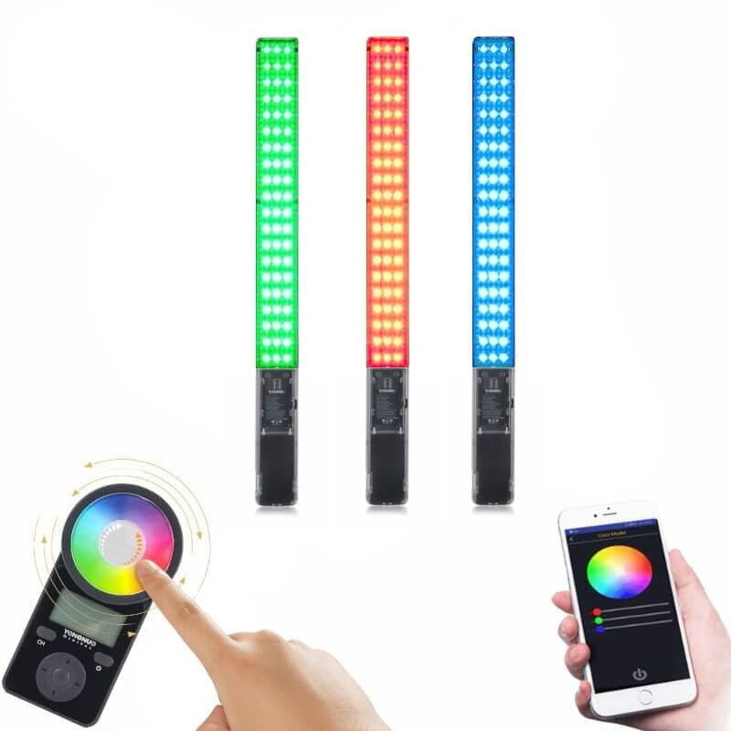 Zaawansowany miecz LED YN-360 III zec światłem naturalnymc o stałej barwie 5600 K, regulacją mocy oraz diodami RGB. Poza standardowymi trybami pracy, oferuje także szereg specjalnie zaprogramowanych efektów imitujących naturalne lub sztuczne źródła światła. Zdalnie sterowany za pomocą pilota lub smartfona.
