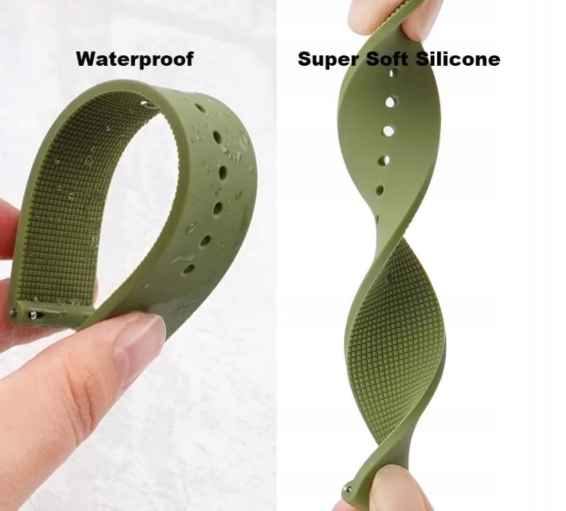 Solidny pasek wykonany z nowoczesnej mieszanki silikonowo- gumowej, która jest odporna na pękanie, a przy tym zapewnia komfort podczas użytkowania. Pasek jest bardzo miękki i przyjemny w dotyku.