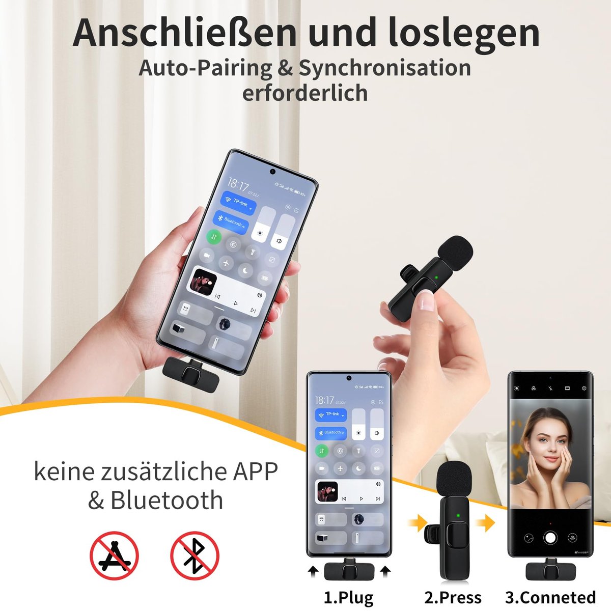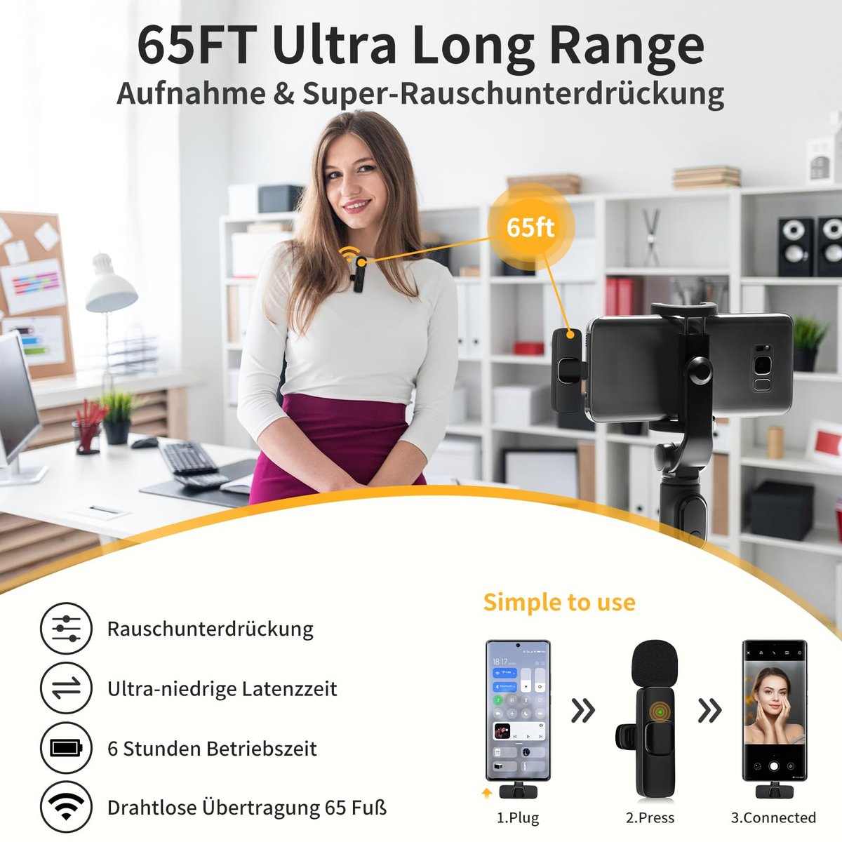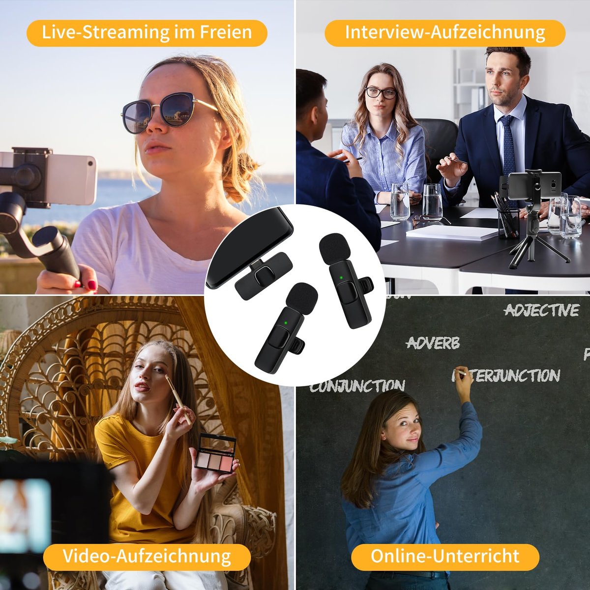 Wielokierunkowa redukcja szumów i dźwięku. Ten ulepszony bezprzewodowy mikrofon krawatowy (lavalier) wykorzystuje wbudowany układ redukcji szumów, technologię automatycznej synchronizacji w czasie rzeczywistym oraz transmisję sygnału 2.4G z wyjątkowo niskim opóźnieniem (0,009 s). Nagrywanie dźwięku podąża za obrazem w czasie rzeczywistym. Bezprzewodowy mikrofon krawatowy z łatwością radzi sobie w różnych hałaśliwych środowiskach i naprawdę odtwarza ludzkie głosy, zapewniając krystalicznie czysty dźwięk!