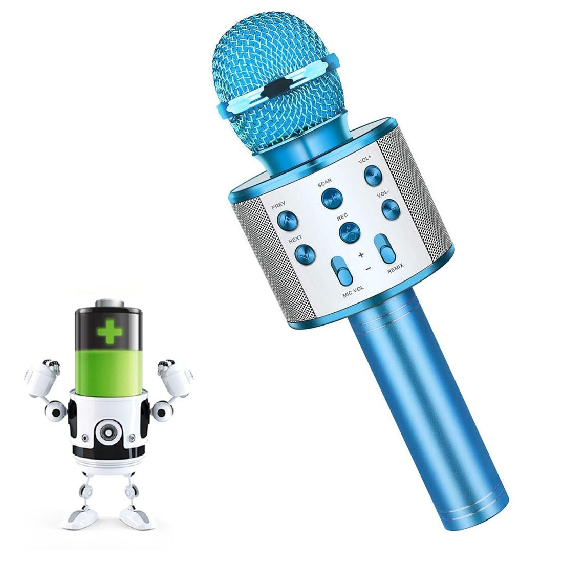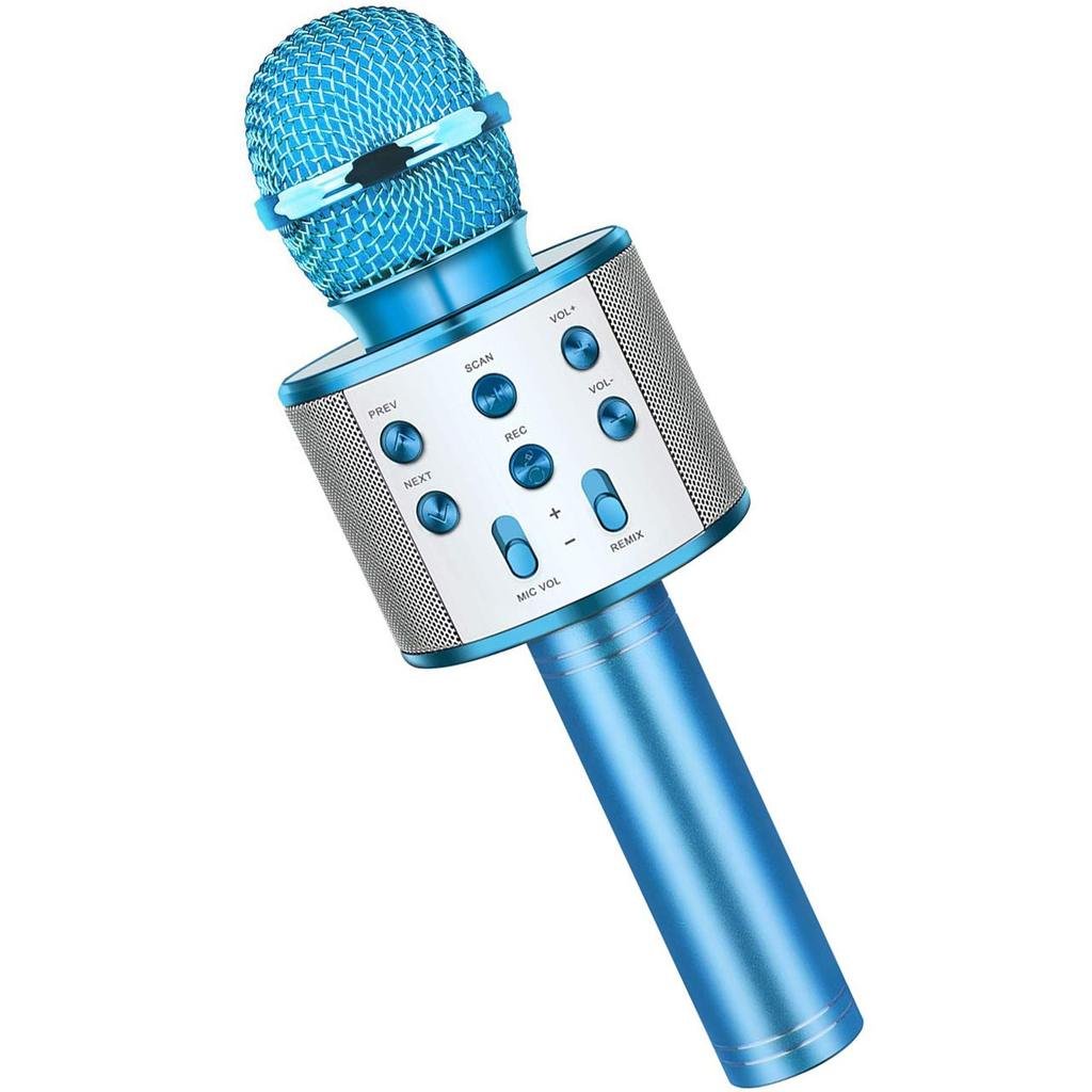 MIKROFON DO KARAOKE BEZPRZEWODOWY Z GŁOŚNIKIEM BLUETOOTH 4.2 NIEBIESKI
