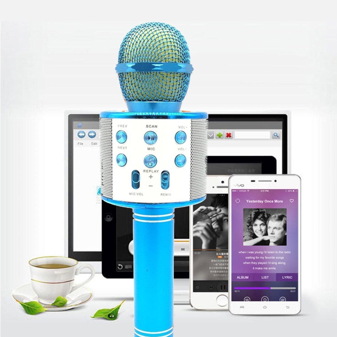 Przedmiotem oferty jest bezprzewodowy mikrofon do karaoke, który pozwala na połączenie go ze smartfonami, tabletami lub telewizorami opartymi na systemie Android, lub iOS. Dzięki czemu możemy nałożyć nasz śpiew na muzykę, która wydobywa się ze wbudowanego głośnika. W ten sposób umożliwia on śpiewanie w czasie rzeczywistym przy akompaniamencie ulubionej muzyki. Istnieje też możliwość nagrania naszego wokalu.