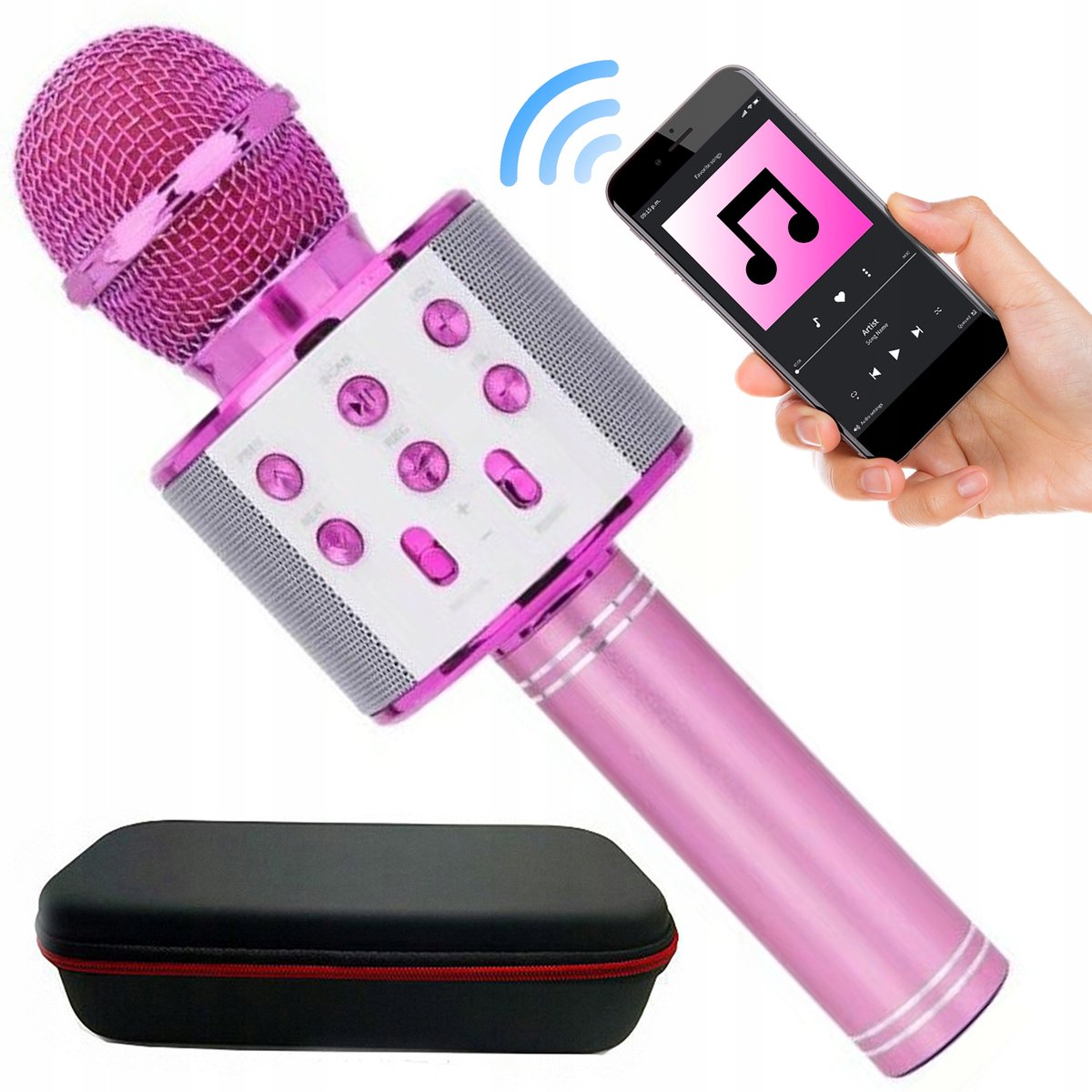 MIKROFON BEZPRZEWODOWY Z GŁOŚNIKIEM BLUETOOTH MIKROFON DO KARAOKE FUNKCJA GŁOŚNIKA BLUETOOTH TRYB RADIA FM MODULACJA GŁOSU WYSOKA JAKOŚĆ DŹWIĘKU NOWOCZESNY DESIGN WEJŚCIE NA ...