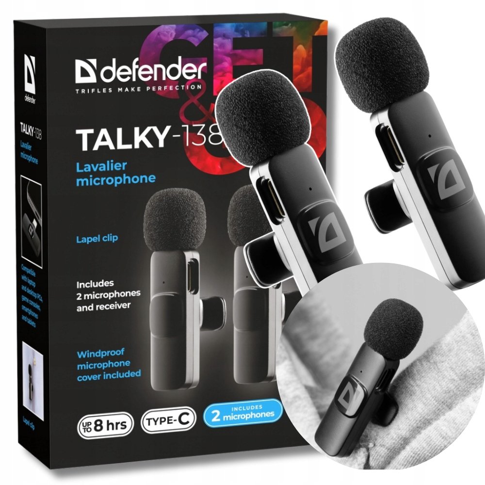 Mikrofon BEZPRZEWODOWY krawatowy do telefonu IPHONA ANDROID komputera USB-C Mikrofon DEFENDER™⭐️⭐️⭐️⭐️⭐️✅ Zapewnia czysty i wyraźny dźwięk podczas nagrań, transmisji i rozmów✅ ...