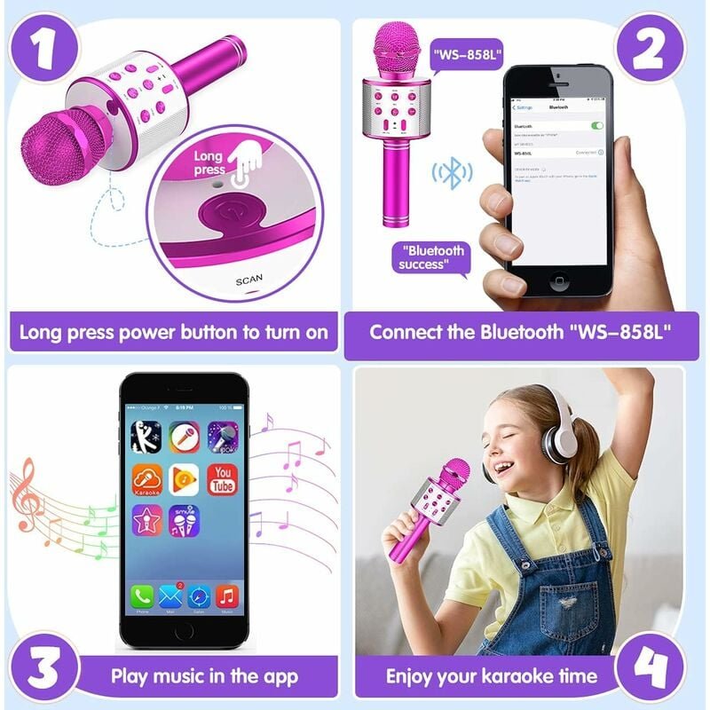 【Doskonały występ na żywo】 - Nasze mikrofony karaoke zostały zaprojektowane tak, aby uczynić z Ciebie gwiazdę sceny i uzależnić Cię od świata muzyki.【Prezent dla dziewczynki/chłopca w wieku 4-12 lat】 - Mikrofon to zabawka dla dziewczynki/chłopca w wieku 4-12 lat. Mogą być również prezentem świątecznym dla dziewczynki/chłopca, prezentem noworocznym, prezentem walentynkowym i prezentem urodzinowym. Doskonale sprawdzą się na imprezach KTV, urodzinach i uroczystościach rodzinnych.