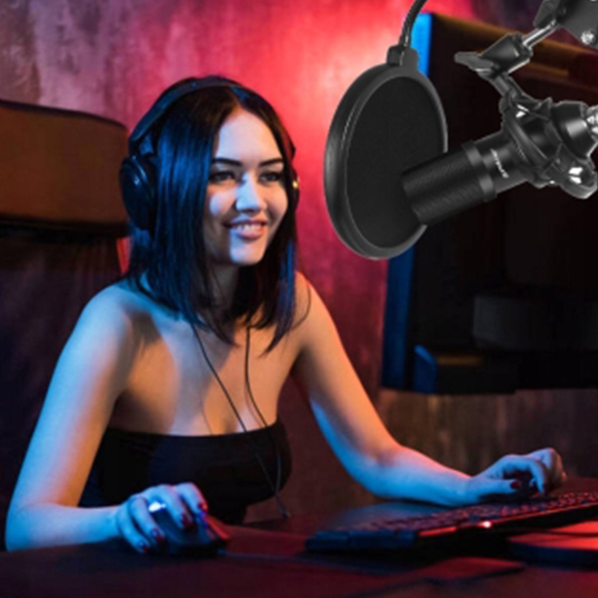 Mikrofon pojemnościowy USB z dołączonym statywem i filtrem pop (tj. redukcji hałasu wywołanego wybuchem powietrza z ust podczas mówienia) jest przydatnym narzędziem w wielu miejscach. Jest to idealne rozwiązanie dla osób, które potrzebują dobrego jakościowo mikrofonu do wykonywania zadań związanych z nagrywaniem dźwięku, takich jak prowadzenie wideokonferencji, nagrywanie podcastów, tworzenie treści wideo na platformach internetowych, nagrywanie piosenek czy nawet nagrywanie audiobooków.