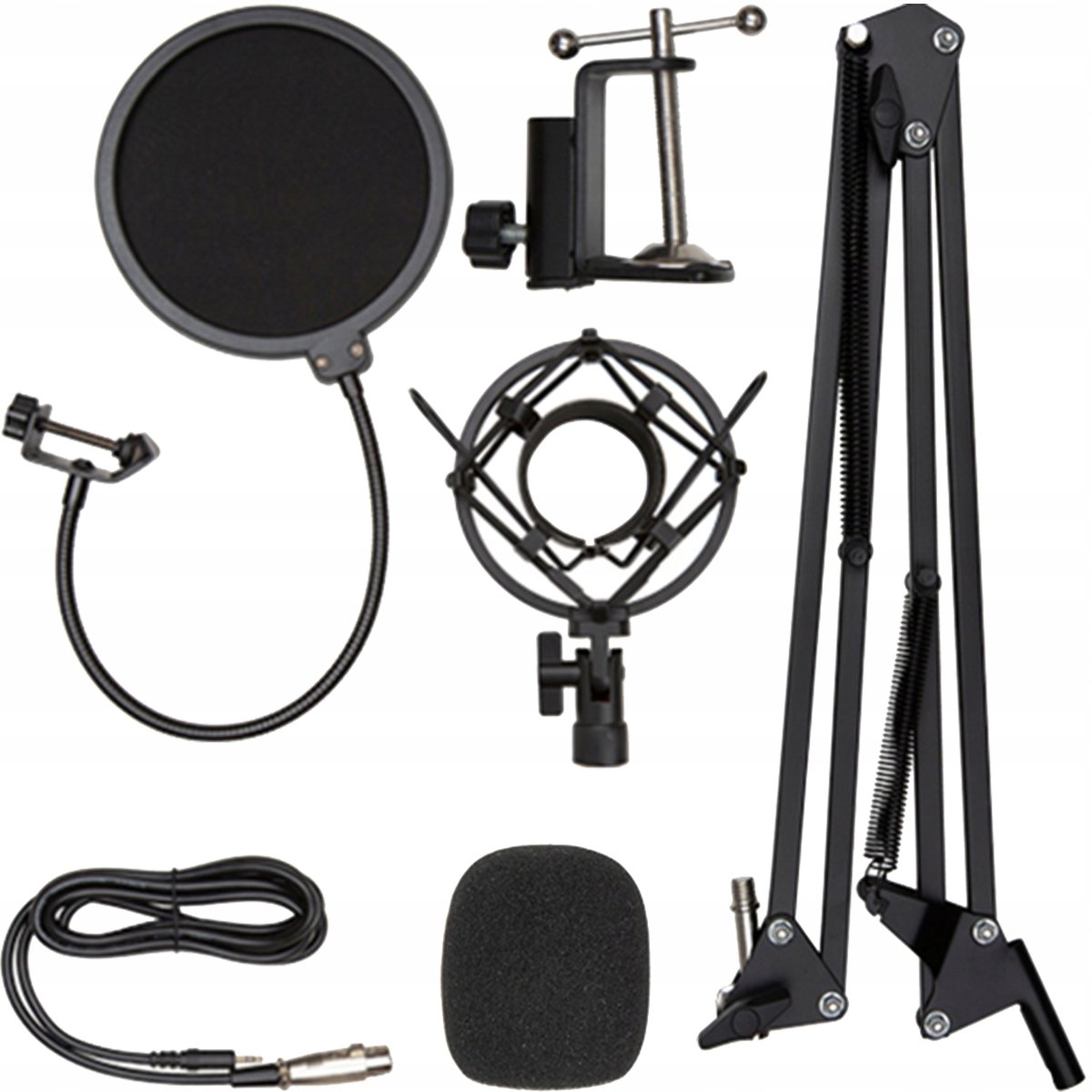 Mikrofon pojemnościowy USB jest sprzedawany w zestawie z uchwytem oraz elementami montażowymi, które pozwalają na łatwe i precyzyjne dopasowanie mikrofonu do niemalże każdej wymaganej przez użytkownika pozycji przy stole czy biurku. Uchwyt mikrofonu jest wykonany z solidnych materiałów, które zapewniają stabilność mikrofonu. Nie musi martwić się o przypadkowe poruszenie mikrofonu, co mogłoby negatywnie wpłynąć na jakość nagrywanego dźwięku.