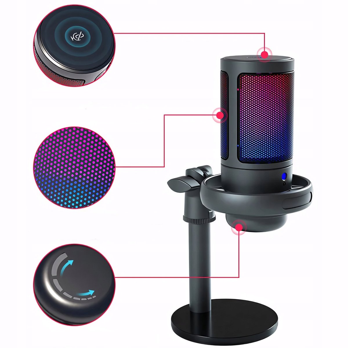 MIKROFON GAMINGOWY USB DO KOMPUTERA POP-FILTER POJEMNOŚCIOWY FUNKCJA WYCISZ