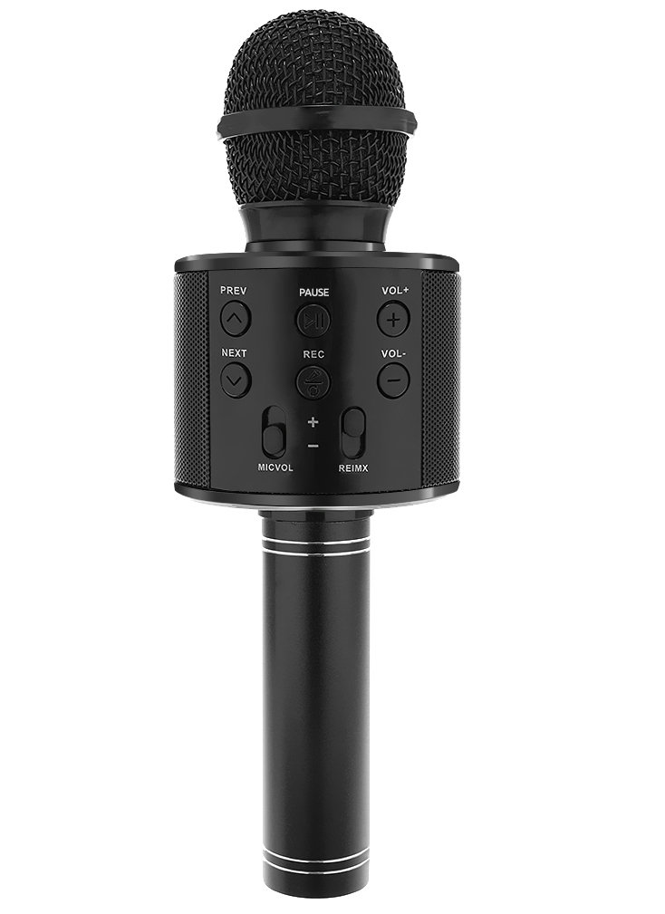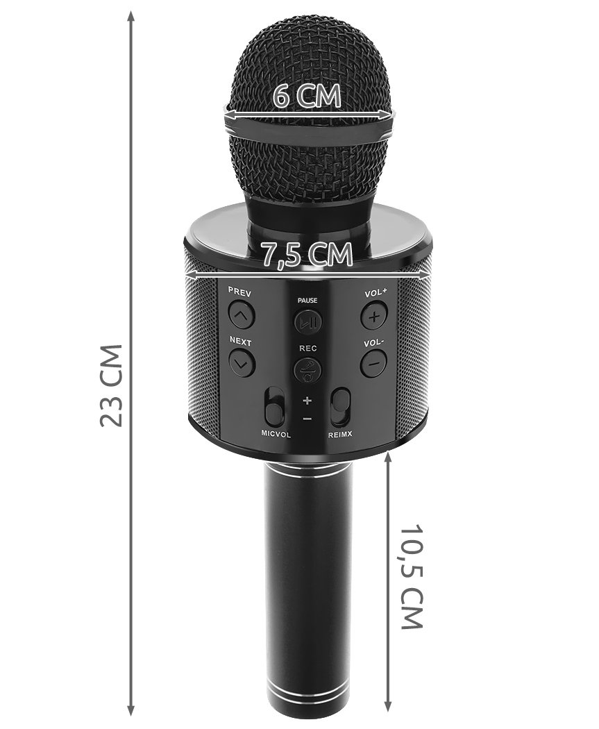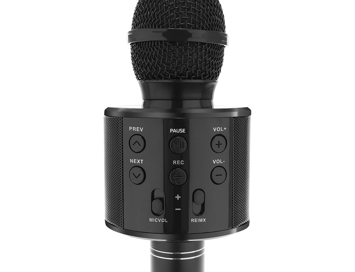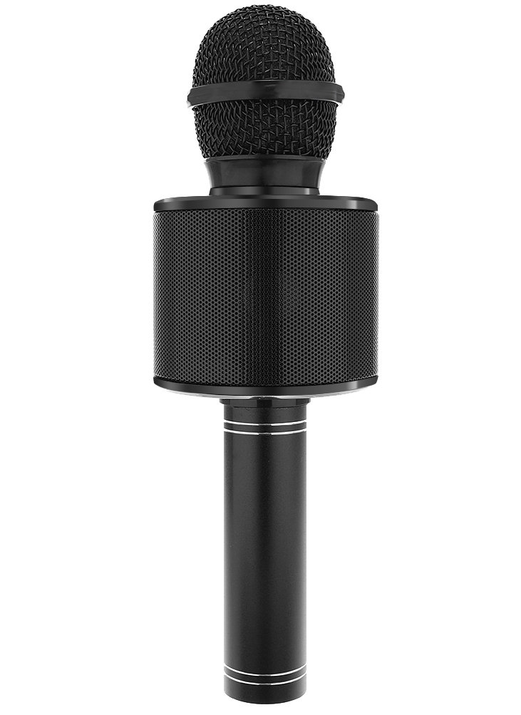 MIKROFON KARAOKE Z GŁOŚNIKIEM CZARNY MULTI FUNKCJONALNY – mikrofon z dwoma głośnikami, umożliwia odsłuchiwanie oraz nagrywanie piosenek; łączy się z urządzeniami ...