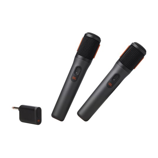 Wyzwól swój głos Jeszcze lepsza zabawa z bezprzewodowymi mikrofonami JBL PartyBox. Wystarczy podłączyć do dowolnego głośnika JBL PartyBox lub skorzystać ze swobody połączenia bezprzewodowego za pomocą adaptera dongle, by dać się usłyszeć zarówno wewnątrz, jak i na zewnątrz. Wewnątrz czy na zewnątrz – te mikrofony brzmią świetnie z każdym głośnikiem PartyBox, a Twój głos będzie czysty i urzekający. Gdy śpiewasz w duecie, wbudowany piankowy pop filtr minimalizuje wszelkie niepożądane dźwięki, a system zawieszenia przeciwwstrząsowego zapewnia ciszę, gdy przekazujesz mikrofon. Działa do 20 godzin, a ponieważ mikrofonu można używać nawet podczas ładowania z wbudowanego w PartyBox powerbanku, zabawa może trwać do końca imprezy. Rozkręć imprezę z bezprzewodowym mikrofonem JBL PartyBox.