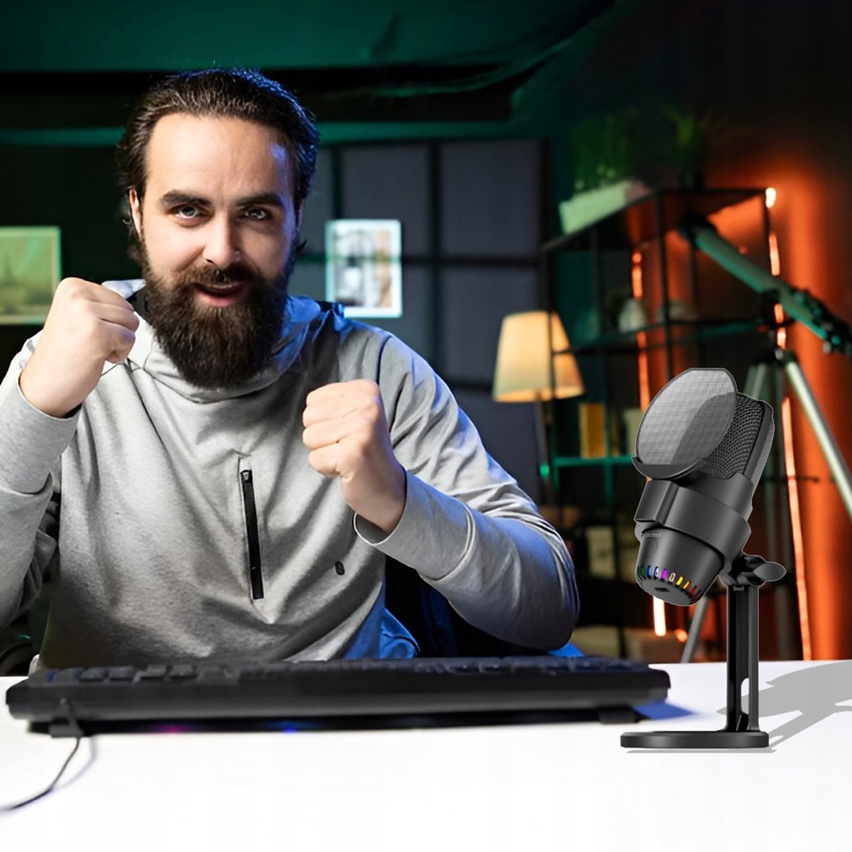 Właśnie zrecenzowałem Mikrofon Pojemnościowy do Komputera Studyjny Statyw Gamingowy USB-C USB 3.0