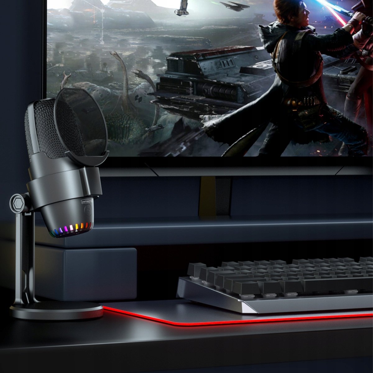 Mikrofon Pojemnościowy USB Zenwire M9 z Redukcją Szumów i Statywem – Ø14 mm, Cardioid, USB-C/USB-A, PS5, Dotykowy Przycisk, Pop Filtr