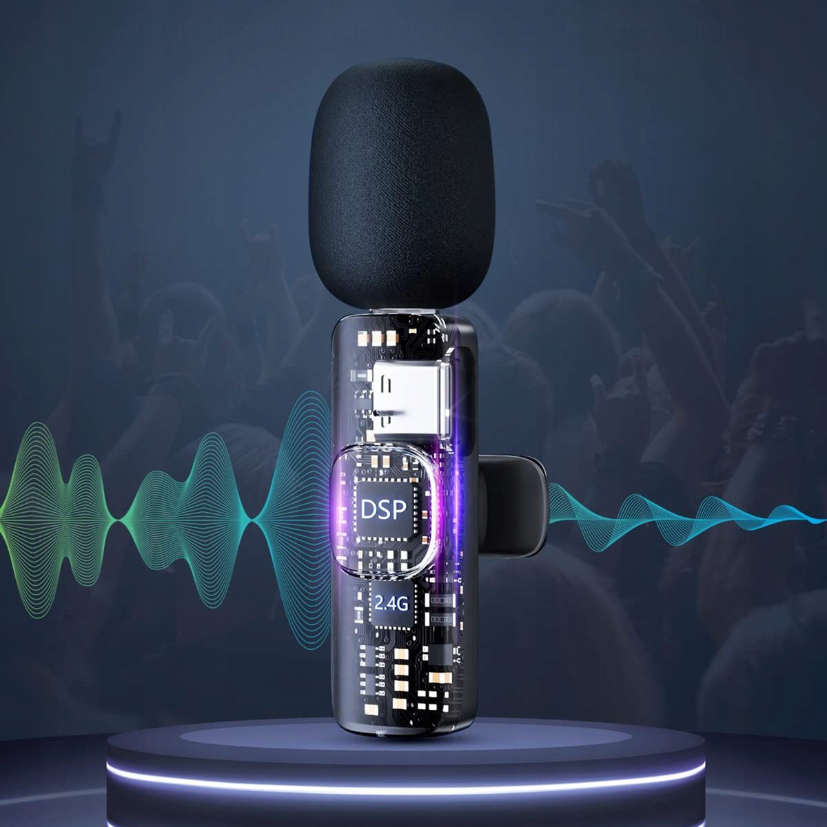 Bezprzewodowe mikrofony do telefony/tablety/aparaty używające typu C: ten ulepszony zestaw bezprzewodowych mikrofonów lavalier z wbudowanym układem redukcji szumów, technologią automatycznej synchronizacji w czasie rzeczywistym i transmisją sygnału 2,4 G z bardzo niskim opóźnieniem (0,009 s), odbiór dźwięku podąża za obrazem w rzeczywistości -czas. Bezprzewodowy mikrofon klapowy może z łatwością poradzić sobie w różnych hałaśliwych środowiskach i naprawdę przywrócić ludzkie głosy, uzyskując krystalicznie czysty dźwięk.