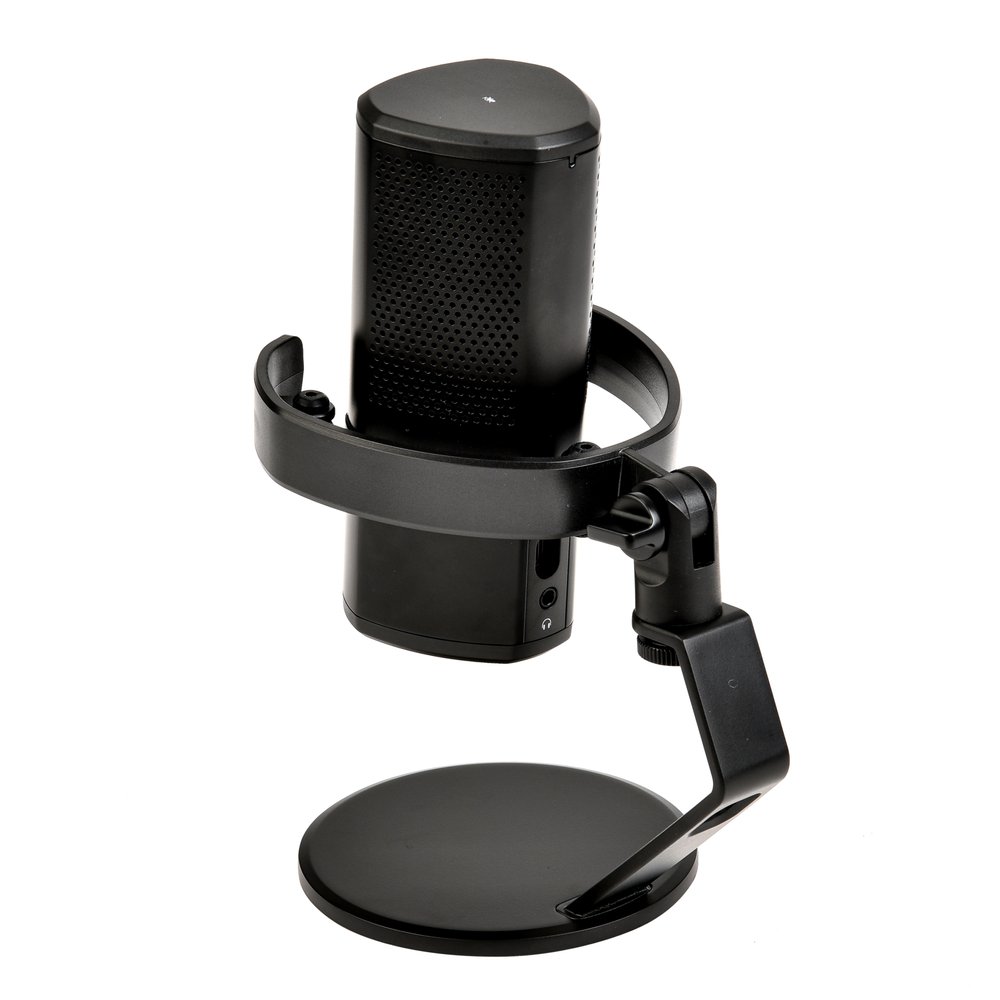 Wbudowany uchwyt z systemem absorpcji wstrząsów minimalizuje niepożądane drgania, zapewniając czystość dźwięku, nawet gdy na stole panuje ruch.