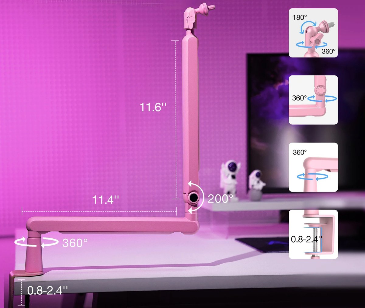 Dodatkowo, mikrofon wyposażony jest w uchwyt montażowy, który umożliwia wygodne i stabilne umieszczenie go na biurku, a pantograf pozwala na optymalne ustawienie mikrofonu w przestrzeni roboczej. Wyjście na słuchawki umożliwia monitorowanie głosu w czasie rzeczywistym, co jest idealnym rozwiązaniem dla twórców treści na żywo.