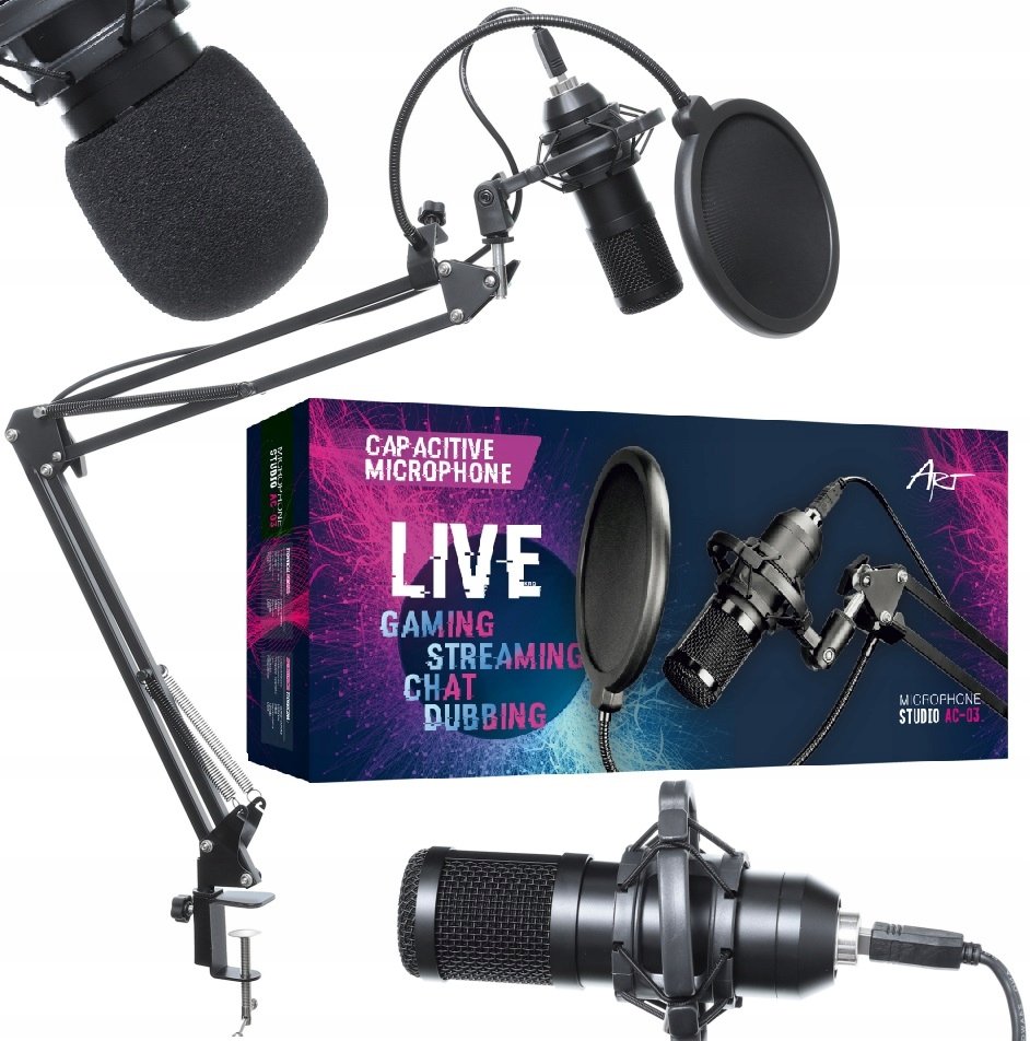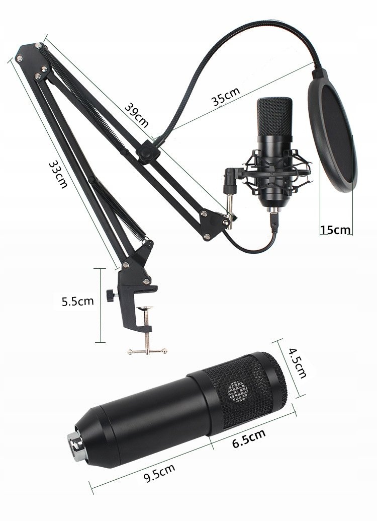 | Nazwa: | Mikrofon studyjny pojemnościowy USB na wysięgniku z membraną filtr POP |
