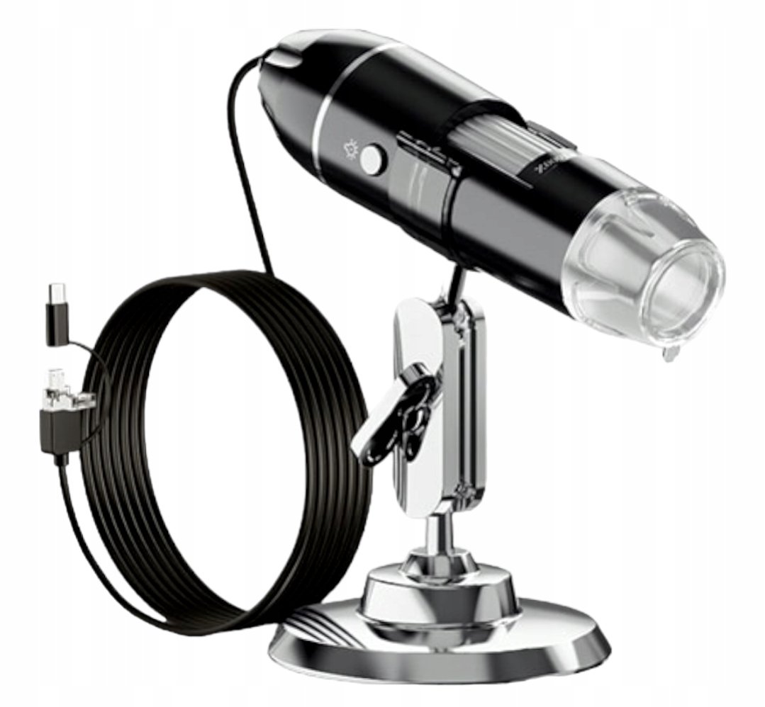 Dzięki temu możesz podłączyć mikroskop do komputera, smartfona lub tabletu, niezależnie od rodzaju portu USB, który posiadasz.