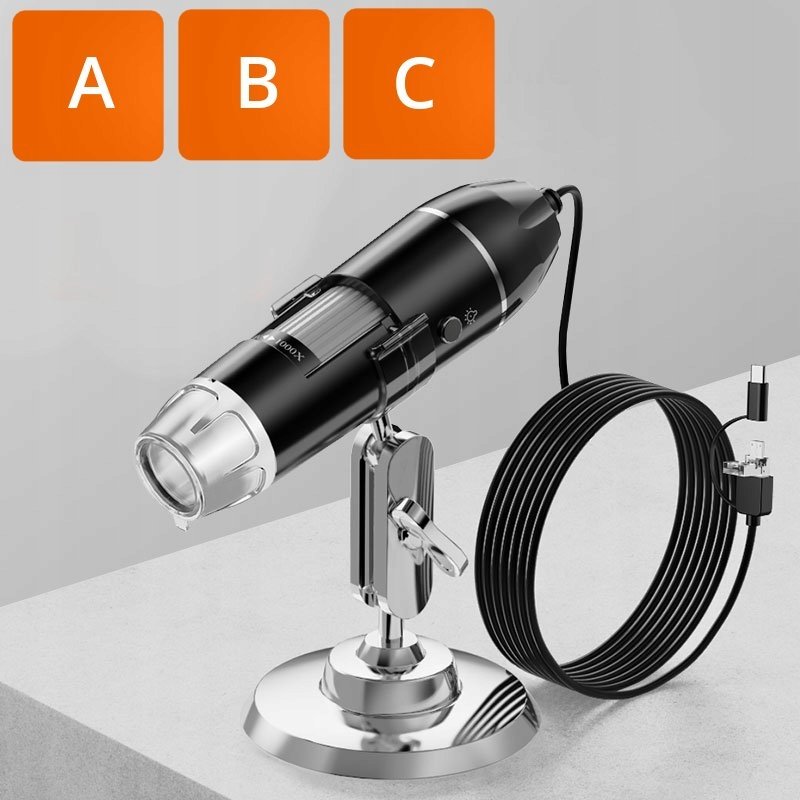 MIKROSKOP CYFROWY USB 1600x 3Mpx 8LED 3w1 ⚡ Wyśmienita ROZDZIELCZOŚĆ 3 Mpx⚡ 1600-Krotne POWIĘKSZENIE⚡ Jasność 8 DIOD LED✅ DARMOWA aplikacja na telefon✅ Instrukcja obsługi w języku ...