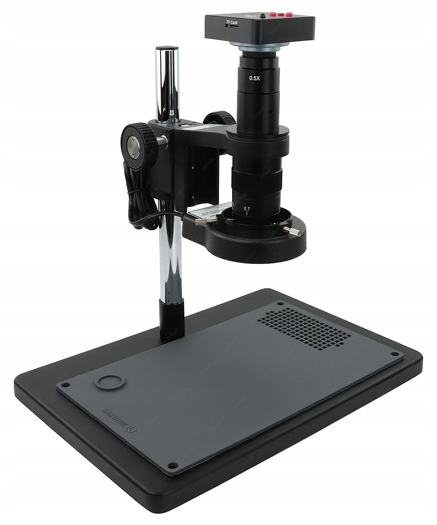Mikroskop posiada regulowane przybliżenie oraz wyświetla obraz w czasie rzeczywistym.