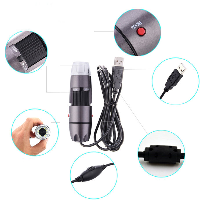Cyfrowy Mikroskop USB z przybliżeniem 1600x Kompaktowy, mocny mikroskop idealny do obserwowania mikroświata na ekranie komputera / laptopa / tabletu. Najważniejsze cechy mikroskopu: ...