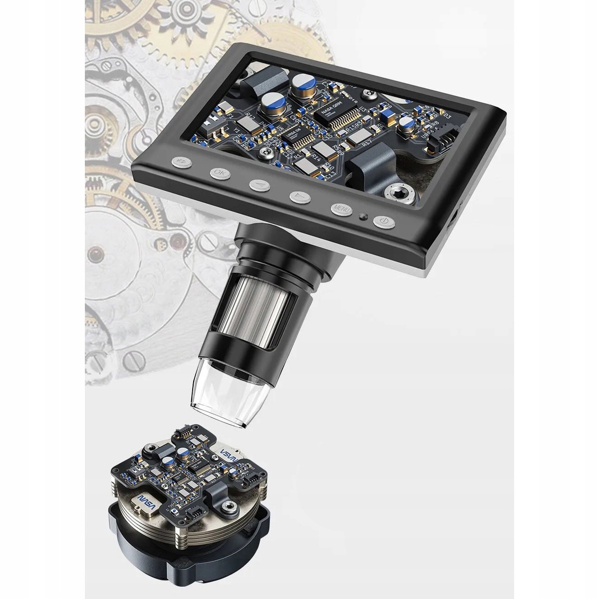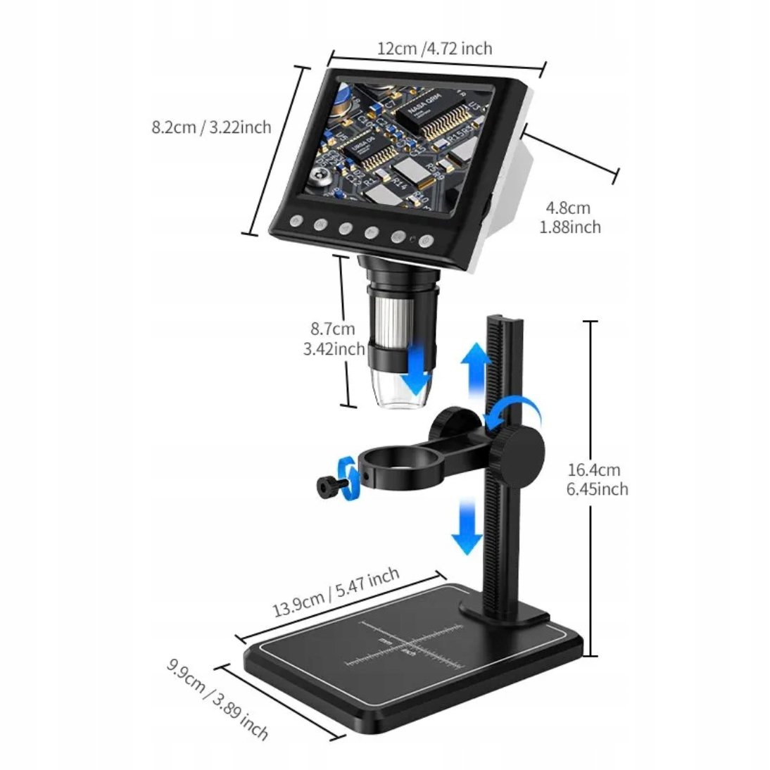 Mikroskop cyfrowy z wyświetlaczem 4,3" DM7-B1✅ 4,3-calowy ekran LCD: Wyposażony w 1080P HD cyfrowy obraz, ten mikroskop wyświetla ostre obrazy w czasie rzeczywistym i dobrej jakości filmy przy pełnym