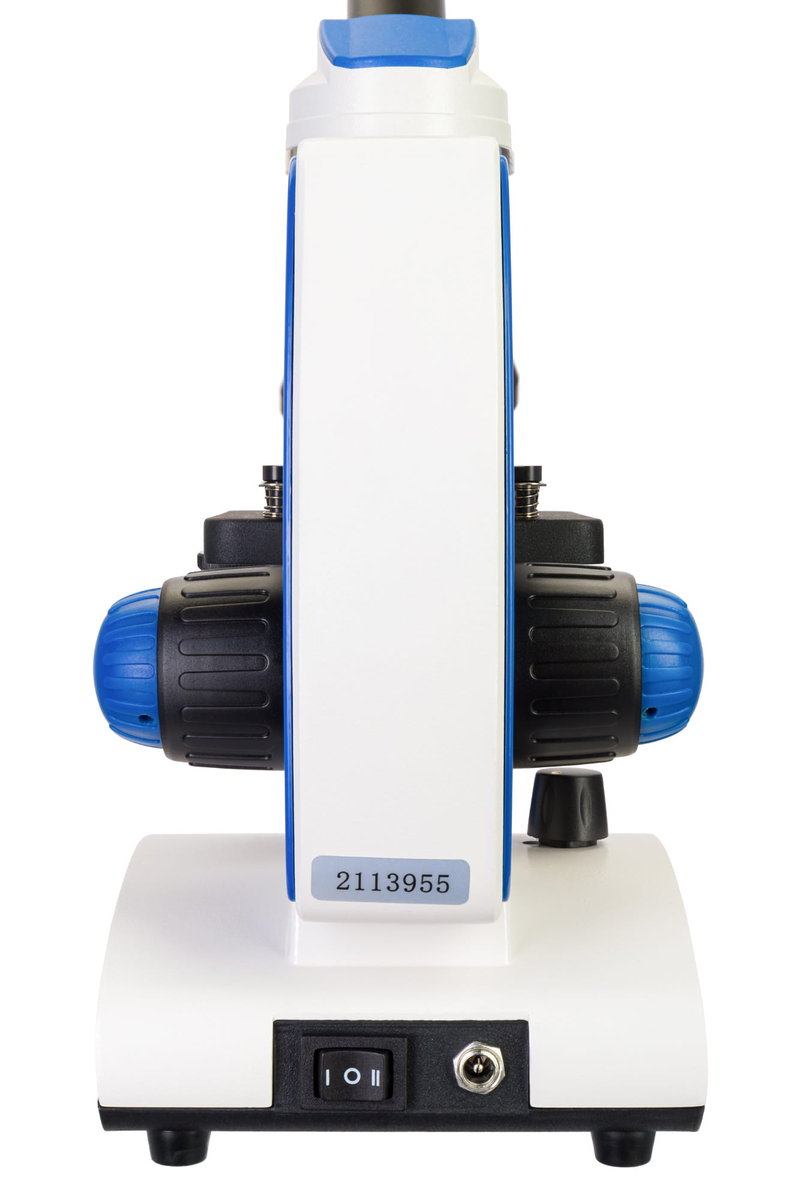 Mikroskop jest wyposażony w układ oświetlenia LED z regulacją jasności. Jest zasilany bateriami lub z sieci (baterie i zasilacz są dołączone do zestawu). Stolik jest wyposażony w uchwyty do preparatów. Pod stolikiem umieszczono diafragmę obrotową.