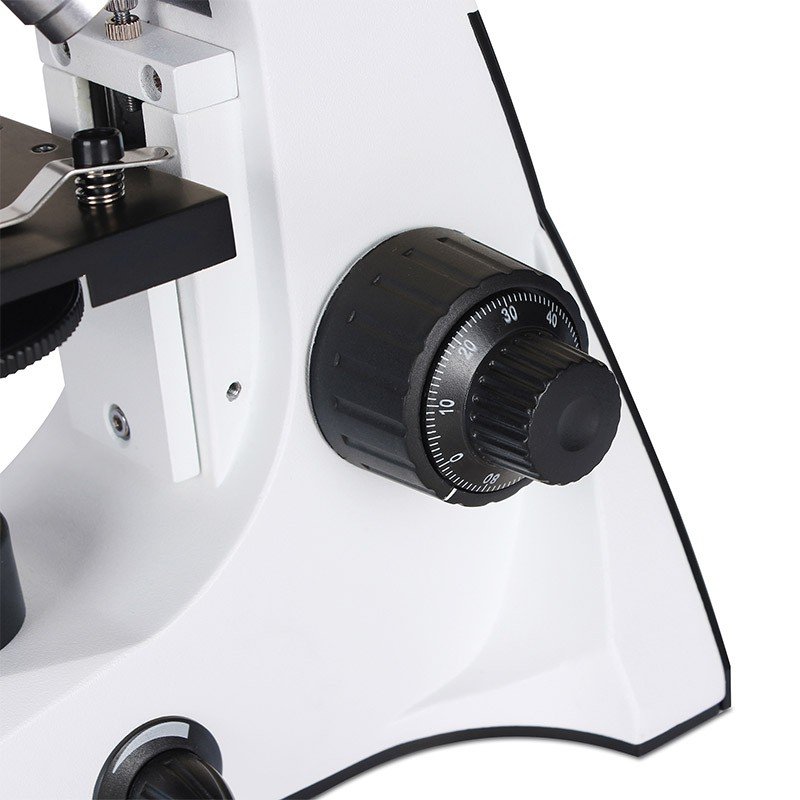 Płynna regulacja intensywności oświetlenia, zintegrowany ze stolikiem kondensor soczewkowy oraz układ makro i mikro regulacji ostrości zapewniają precyzyjne ustawienie ostrości oraz dobór optymalnych warunków obserwacji. Zestaw kolorowych filtrów na podstolikowym kole filtrowym zapewnia lepsze odwzorowanie fragmentów kolorowych i przeźroczystych obiektu.