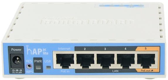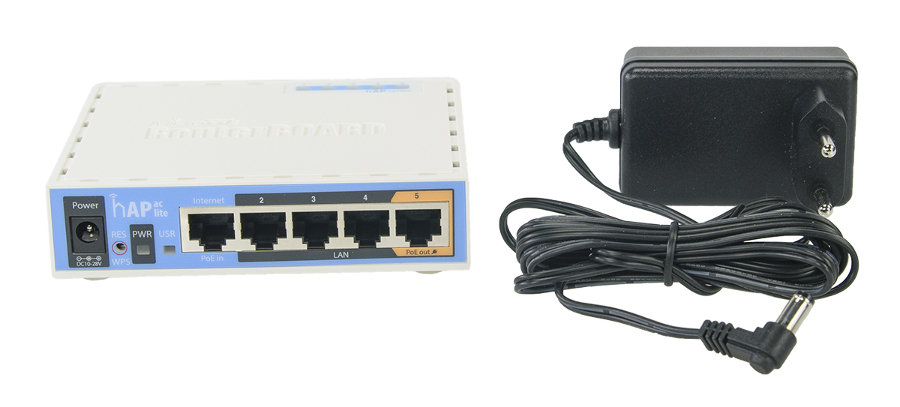 Dodatkowo port ETH 5 oferuje funkcję PoE-Out - może zasilać inne urządzenia o takim samym napięciu zasilania i maksymalnie prądem o natężeniu do 500mA. HAP ac lite może być zasilany z gniazda `jack` (zasilacz w komplecie) lub z poprzez pasywne PoE. Urządzenie jest zarządzane systemem RouterOS level 4.