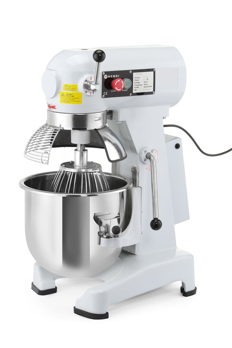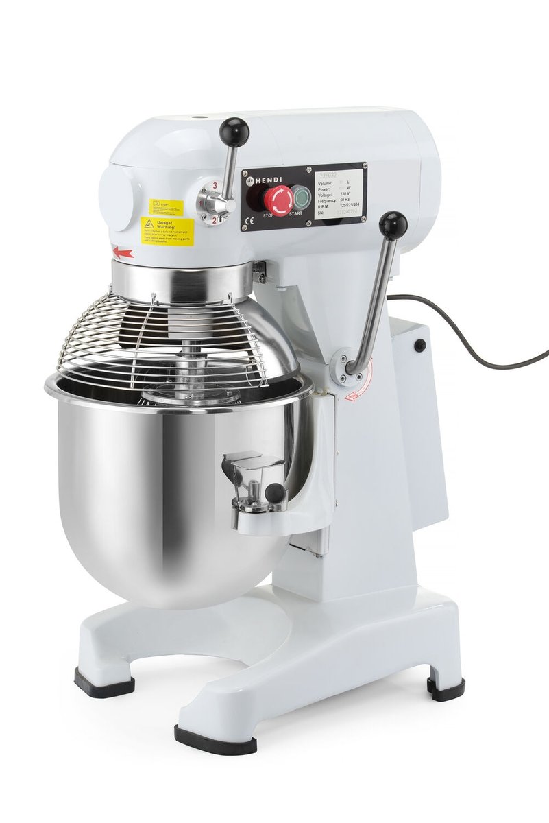Mikser planetarny marki Hendi zapewnia doskonale wyrobione ciasto, wydajną pracę oraz solidne wykonanie. Podstawa z żeliwa odpowiada za stabilną pracę miksera, a wydajny silnik o mocy 750W umożliwia pracę ciągłą do 30 min (w zależności od użytego akcesorium).