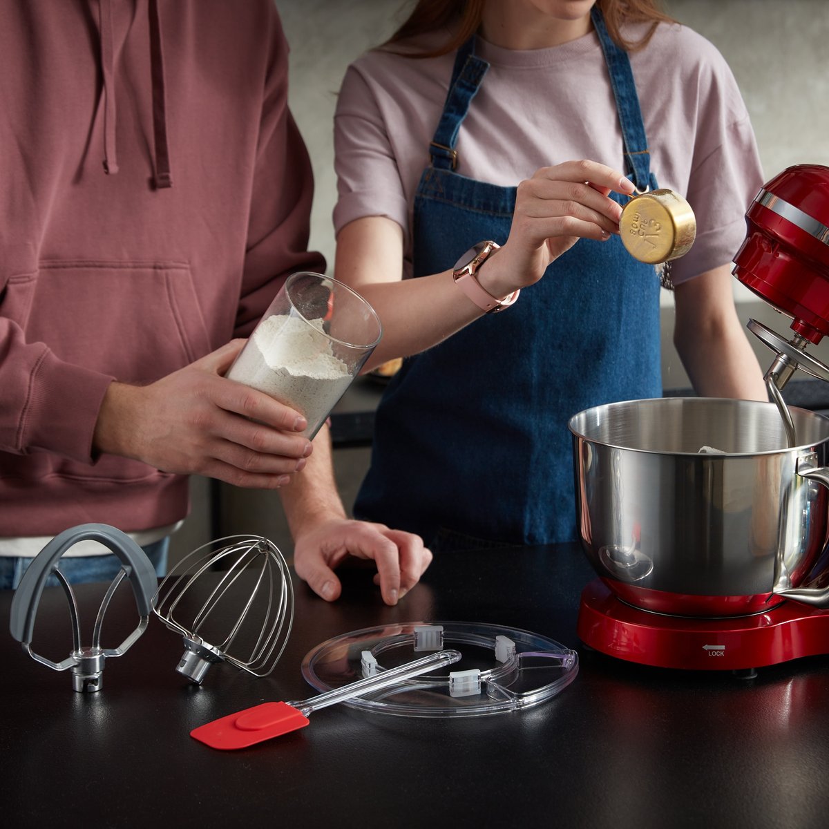 Solidny metalowy mechanizm w planetarnym robocie kuchennym zapewnia nie tylko wyjątkową trwałość, ale także efektywne mieszanie, ubijanie i ugniatanie składników. Dzięki tej innowacyjnej konstrukcji możesz cieszyć skutecznym i szybkim przygotowywaniem składników, a jednocześnie nie musisz martwić się o długą żywotność urządzenia.