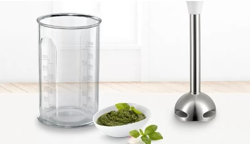 | Wyposażenie: | końcówka do ubijania, końcówka do zagniatania ciasta, końcówka do blendowania, pojemnik do miksowania |