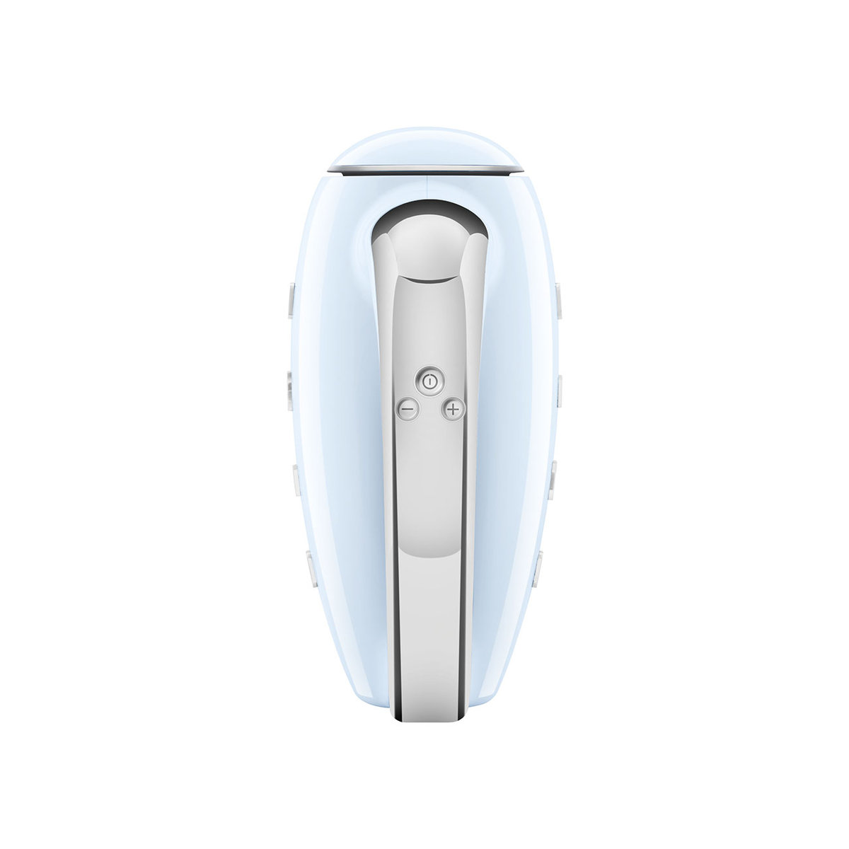 Dwie rózgi, służące do miksowania składników takich jak bita śmietana, sosy lub białka jaj; dwie końcówki Optimus, idealne do półtwardych produktów, takich jak herbatniki i spody do ciast; dwa haki do ciasta, idealne do miksowania produktów na zakwasie, takich jak pizza czy chleb. Pod koniec użytkowania lub podczas obróbki antypoślizgowe nóżki pozwalają odpocząć mikserowi zapewniając łatwość użytkowania. Ponadto spersonalizowane etui z tkaniny SMEG pozwala na przechowywanie dołączonych akcesoriów.