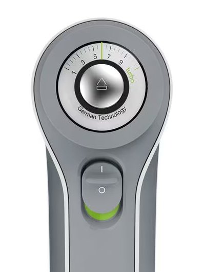 Wystarczy przekręcić pokrętło prędkości kciukiem od prędkości 1 do 9, aby płynnie znaleźć dokładnie taką prędkość, jakiej potrzebujesz.