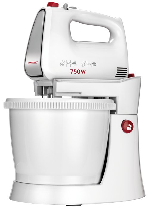 | Wyposażenie: | dwie obrotowe misy o pojemności 3,0 l każda, mieszadła trzepakowe do ubijania piany, mieszadła hakowe do wyrabiania ciasta |