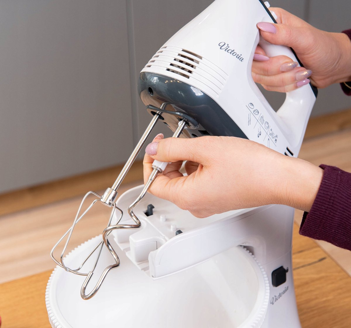 Jeżeli nie chcesz trzymać miksera podczas mieszania ciasta lub zupy, to mikser model Victoria jest właśnie dla Cibie!
