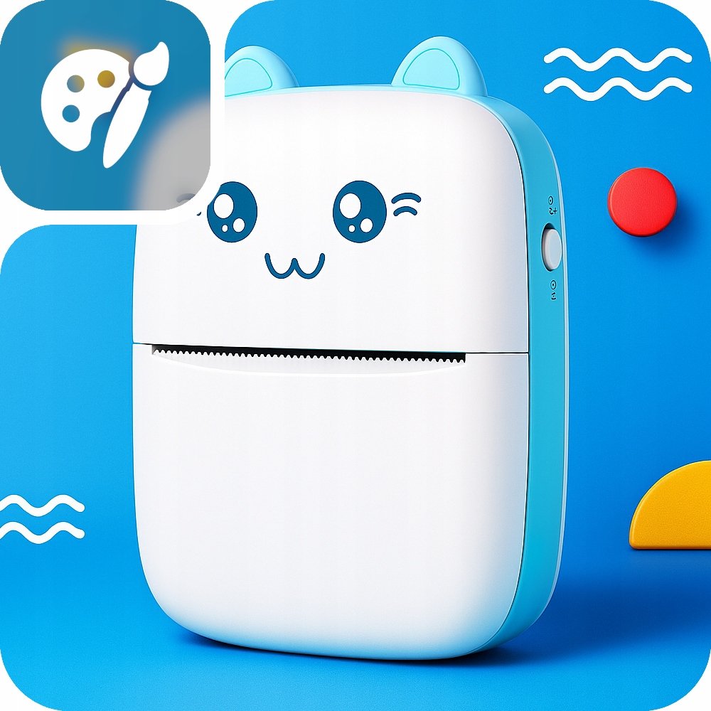 - ✔️ Mini drukarka Drukuś – niebieski kotek 🐱