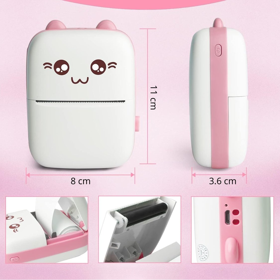 ⭐Do drukowania nie potrzebujesz żadnego tuszu, który zazwyczaj jest drogi. Wystarczy papier termiczny, który starcza na długo a dodatkowo dostajesz 11 rolek