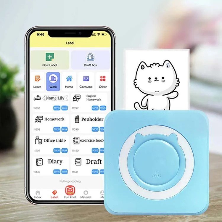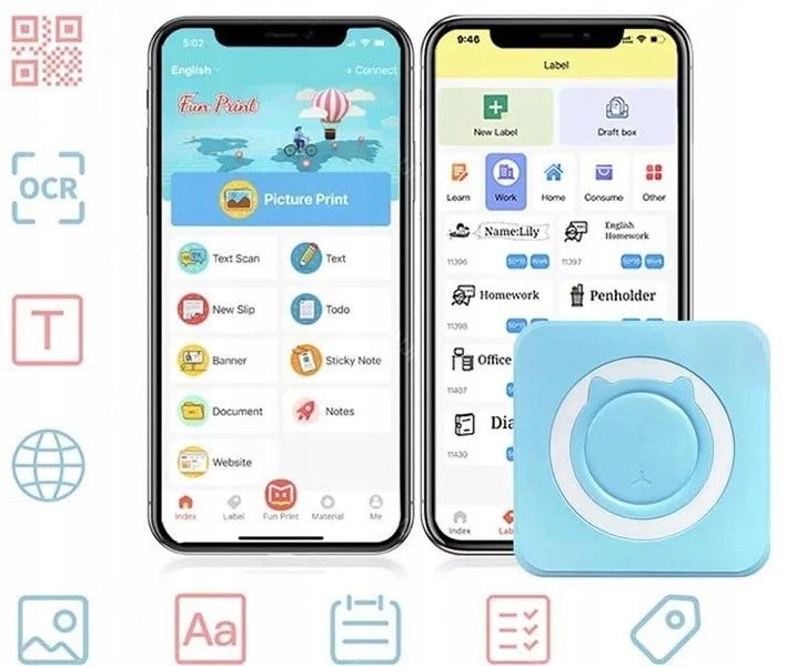Drukarka współpracuje z telefonami poprzez aplikację Fun Print, którą można pobrać bezpłatnie z Google Play lub App Store.