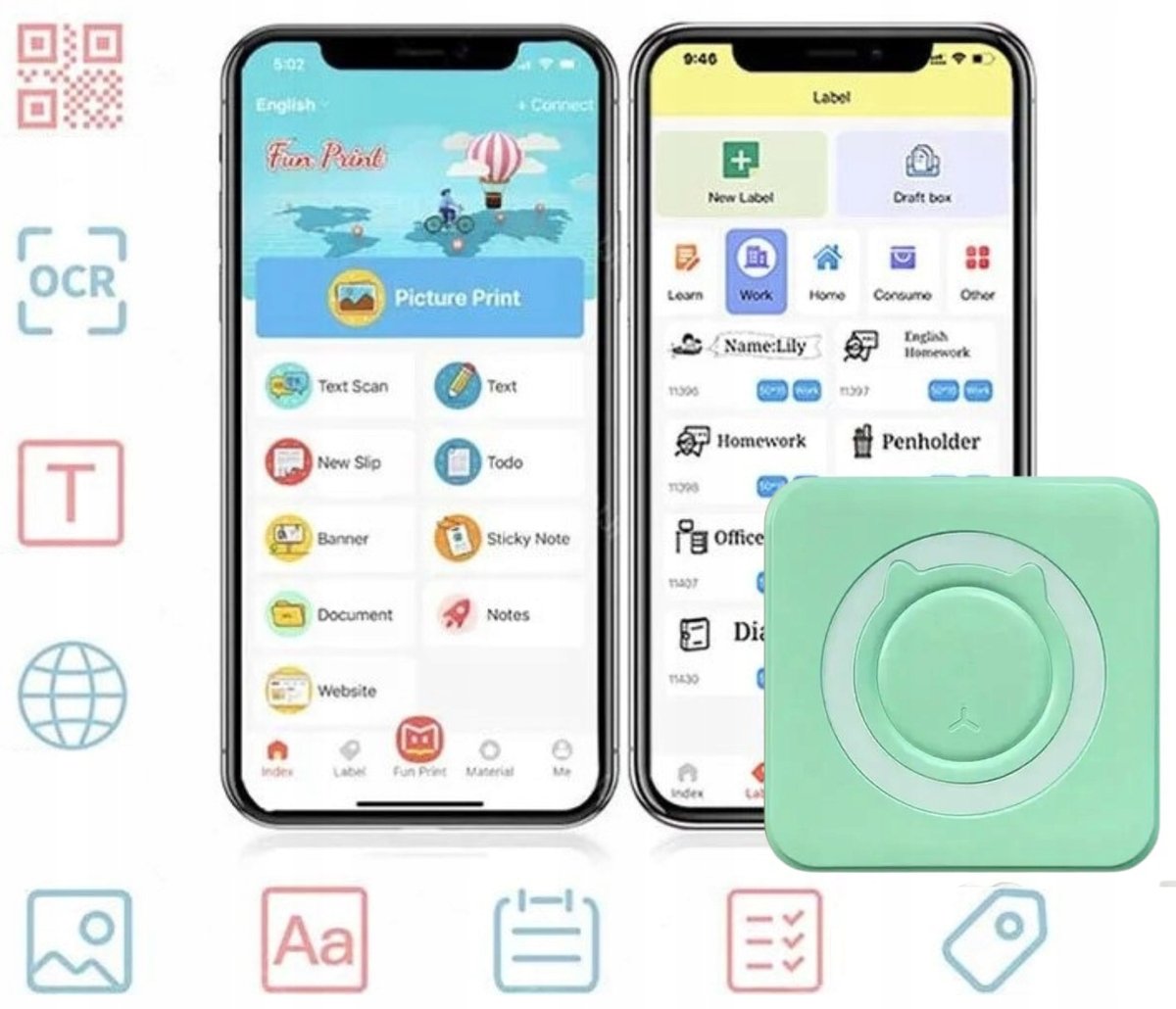 Drukarka współpracuje z telefonami poprzez aplikację Fun Print, którą można pobrać bezpłatnie z Google Play lub App Store.