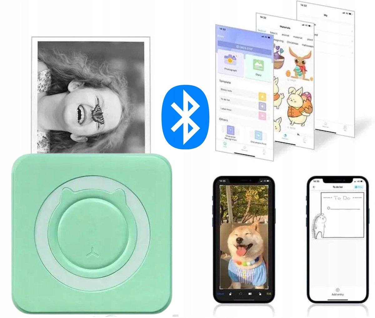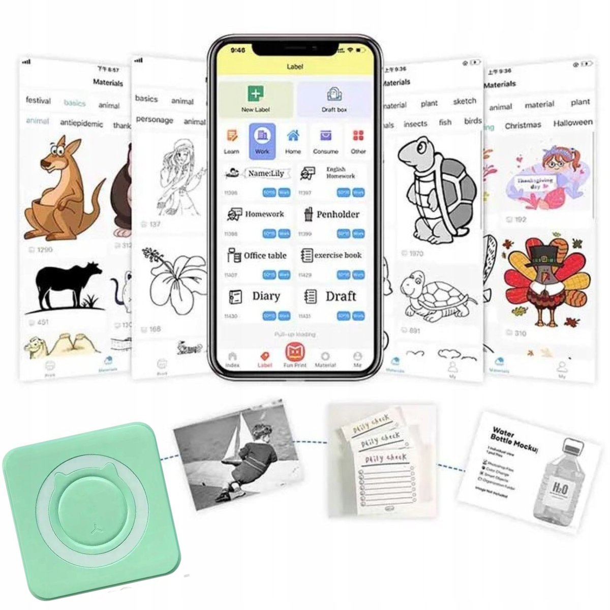 Właśnie zrecenzowałem Mini drukarka termiczna przenośna dla dziecka C15 zielona Bluetooth Drukuś
