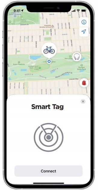 Gdy Smart TAG jest w zasięgu połączenia Bluetooth, możesz sprawdzić jego lokalizację w czasie rzeczywistym za pomocą aplikacji Apple Find My. Możesz zobaczyć, gdzie znajduje się Twój Smart Tag na mapie. Pierwsza aktualizacja pozycji lokalizatora może potrwać do 10 minut.