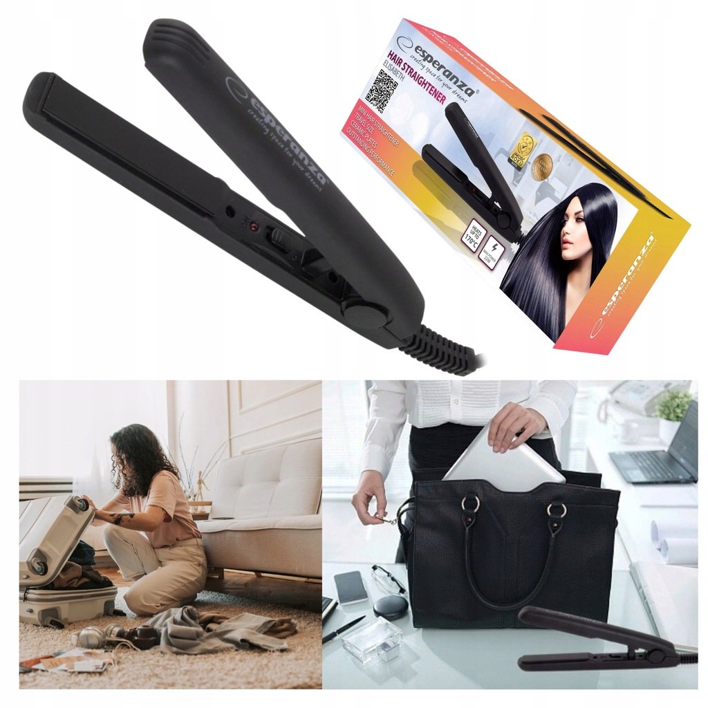Mini prostownica do włosów ELISABETH została stworzona dla kobiet, które dużo podróżują lub nie mają za wiele miejsca w łazience. Dzięki swoim niewielkim rozmiarom zmieści się w każdej kosmetyczce czy szufladzie. Została wyposażona w płytki prostujące wykonane ze specjalnej ceramicznej powłoki, która doskonale podgrzewa i prostuje włosy pozostawiając je gładkimi i błyszczącymi na długi czas.