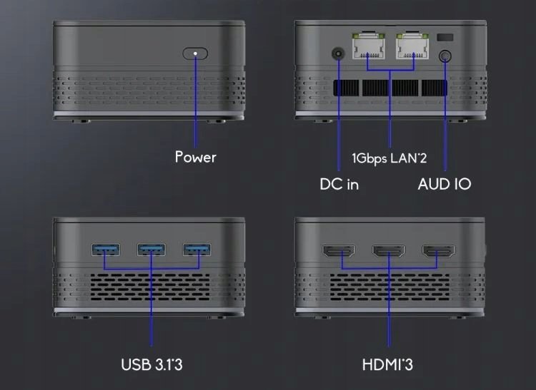 - Wyjścia: 3* HDMI 2.0 + 3* USB 3.0 + 2* LAN 1Gbps