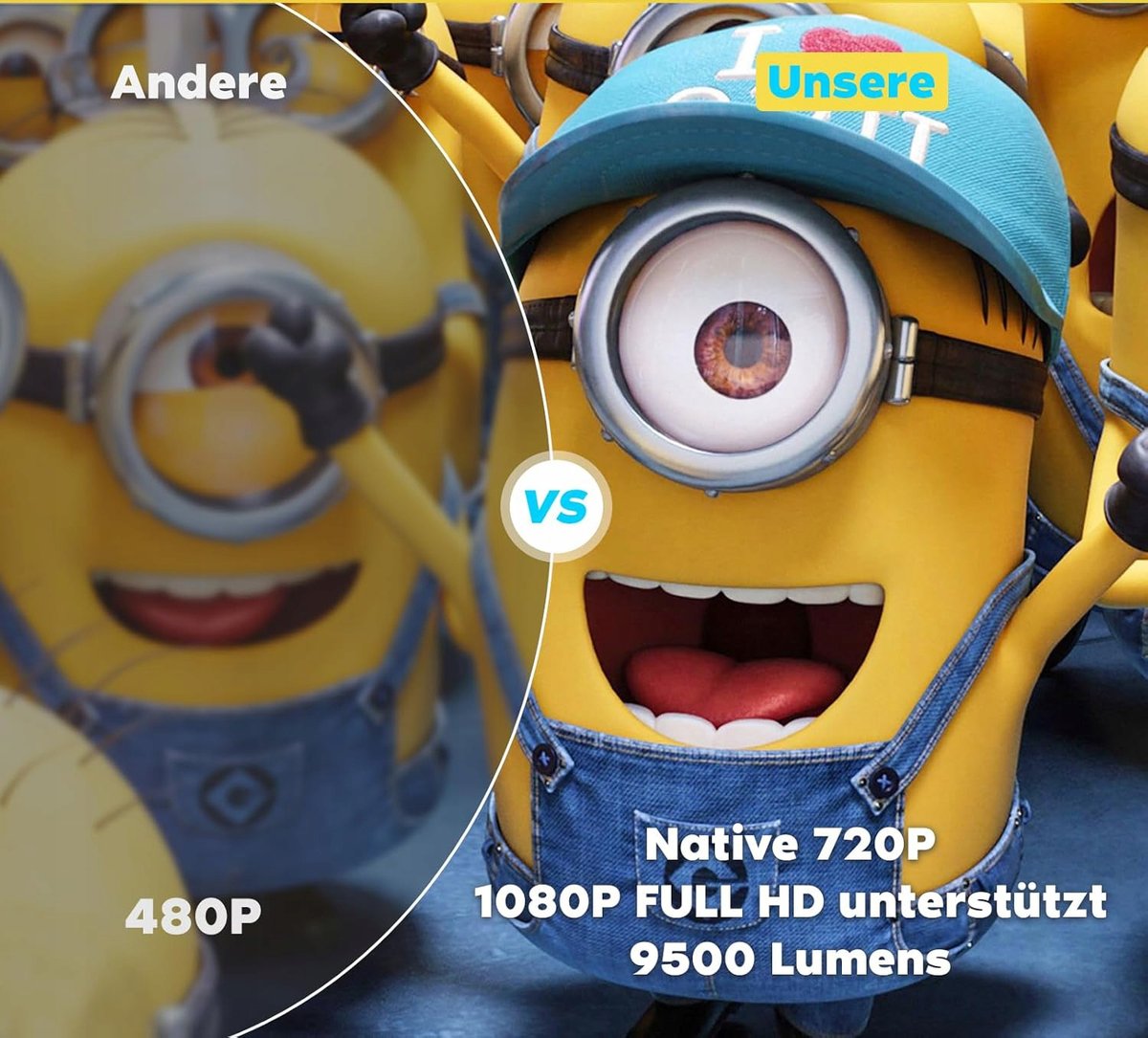 Kompaktowy i wydajny: Za tym mini projektorem stoi producent z wieloletnim doświadczeniem. Niewielki rozmiar 6 x 11,7 x 15,2 cm zapewnia wysoką rozdzielczość natywną 1280 x 720 i wyświetla obrazy do 200 cali. Zaawansowany i najnowszy chip poprawia przejrzystość i gładkość obrazu oraz umożliwia wyświetlanie drobnych gradientów kolorów.