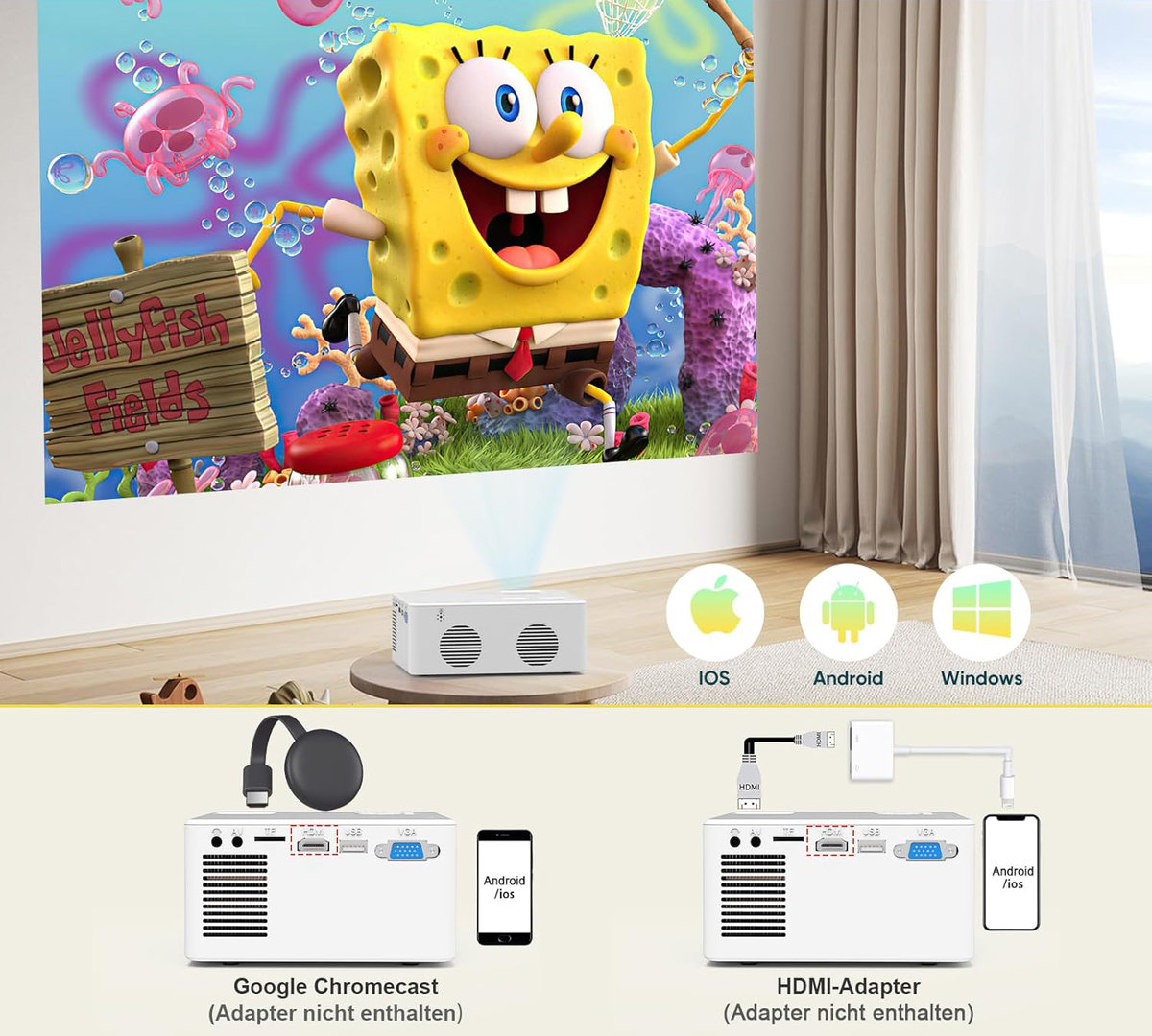 | Nazwa: | Mini Projektor iOS Android Windows Bluetooth 1080P działa z TV Stick HDMI |