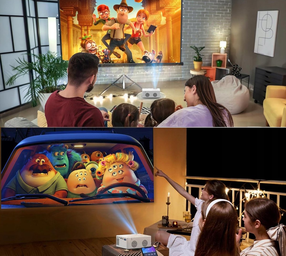Nie masz czasu na pójście do kina? Dzięki temu przenośnemu projektorowi możesz łatwo przenosić treści ze swoich urządzeń na duże płótno o przekątnej 200", tworząc w ten sposób własne kino na świeżym powietrzu. Przygotuj popcorn na idealny wieczór filmowy z rodziną i przyjaciółmi!